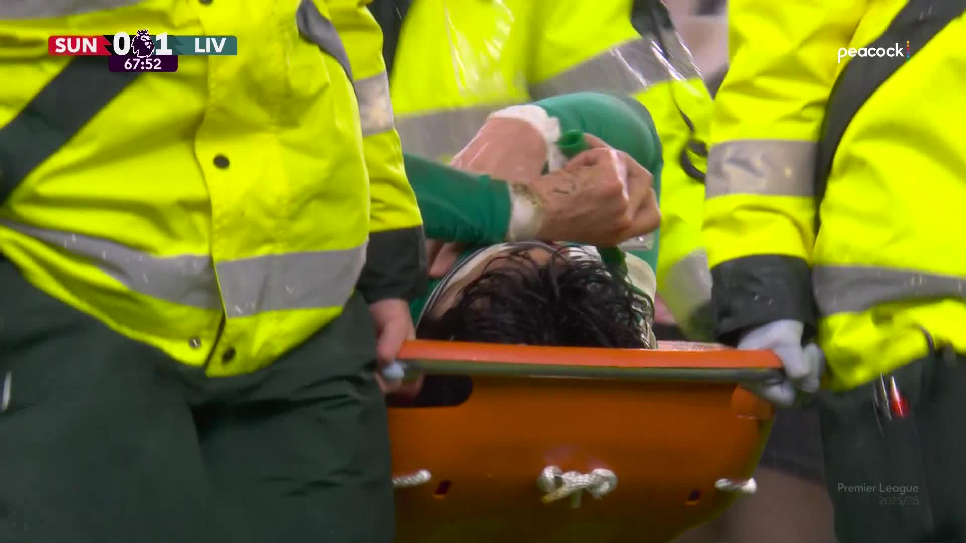 「打ちひしがれた遠藤航が担架でピッチを後にする。既に守備陣の負傷者続出でリバプールに取っては見たくない光景だった💔」