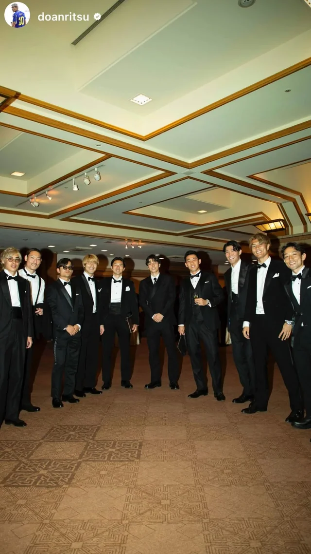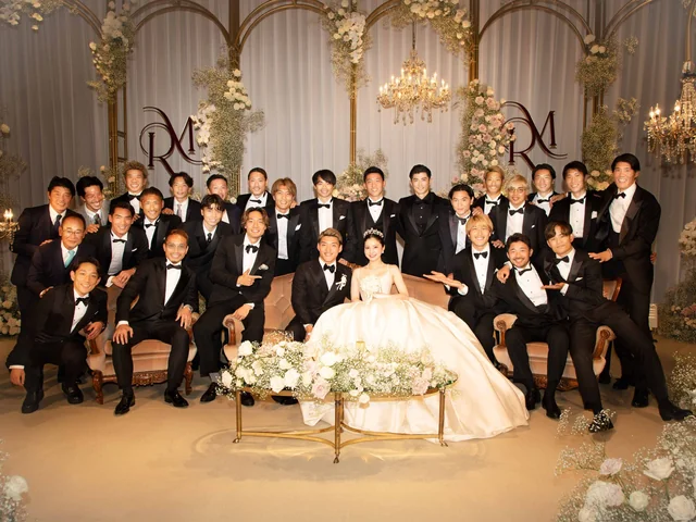 前日に「先日、私たちは結婚披露宴を無事に終えることができました」と夫婦の2ショット写真を投稿していたが、この日はゲストとの記念撮影の様子を投稿。その中には明石家さんま、小栗旬と山田優夫妻、日本代表の同僚である長友佑都と平愛梨夫妻の姿が。日本代表も久保建英、三笘薫、伊東純也ら主力が勢ぞろいで、コメント欄では「メンバーすごすぎ!」、「小栗旬くんもいる!」、「すごいメンツ!世界選抜も真っ青」、「すごー、さんまさんまで」、「人脈すごい」と驚きの声が寄せられていた。