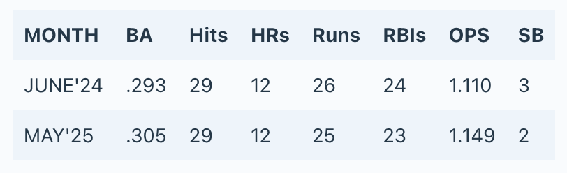そして9月は打率はほぼ4割、32打点、OPS1.220で6月を凌駕していた