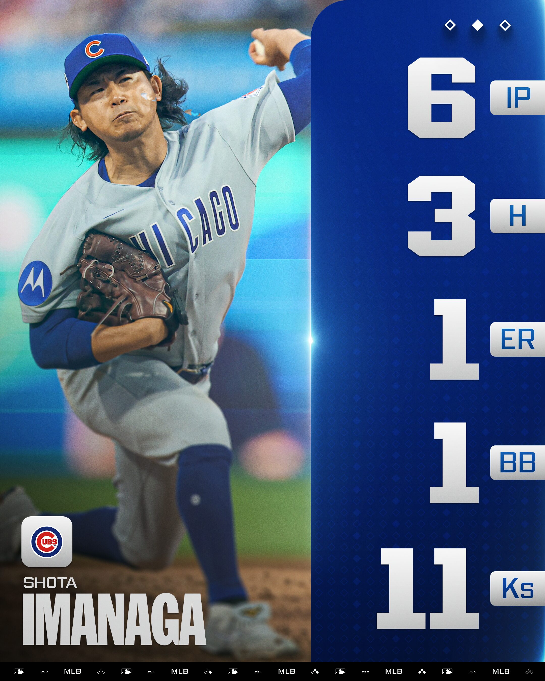 翻訳元:https://www.reddit.com/r/baseball/comments/1smo89d/shota_imanaga_against_the_phillies_6ip_3h_1er_1bb/、https://www.reddit.com/r/CHICubs/comments/1smopkw/shota_imanaga_ties_his_career_high_with_11/