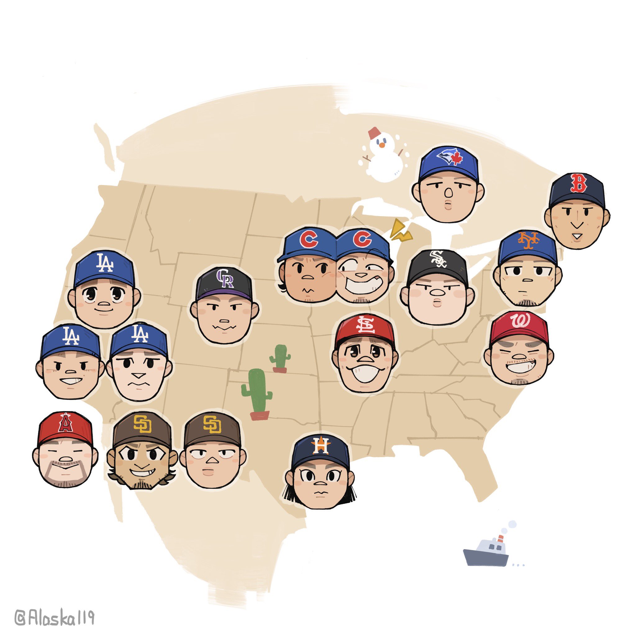 翻訳元:https://www.reddit.com/r/baseball/comments/1r2alni/japanese_mlb_players_face_before_2026_season_art/、https://www.reddit.com/r/Dodgers/comments/1r2bjtb/mlb_japanese_players_distribution_map_2026_credit/
