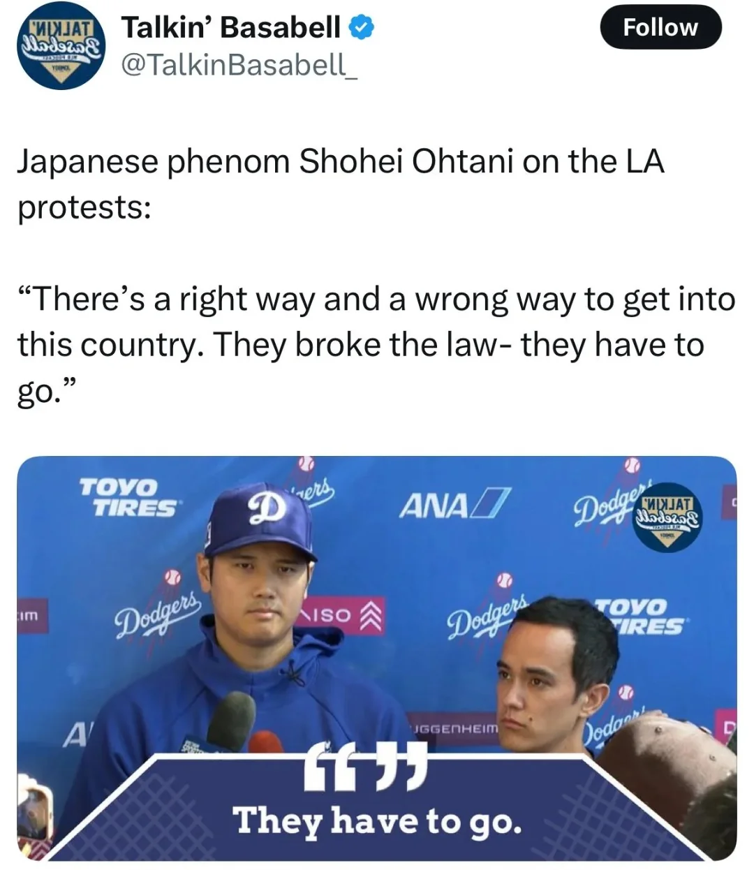 日本の天才、大谷翔平がLAの抗議デモについて: